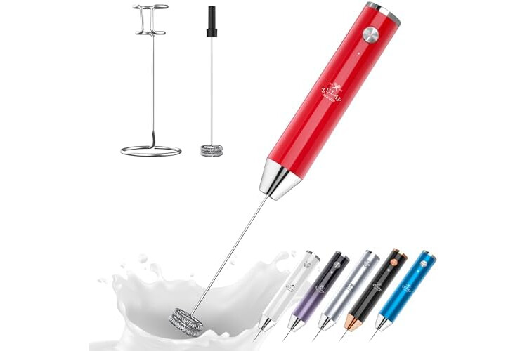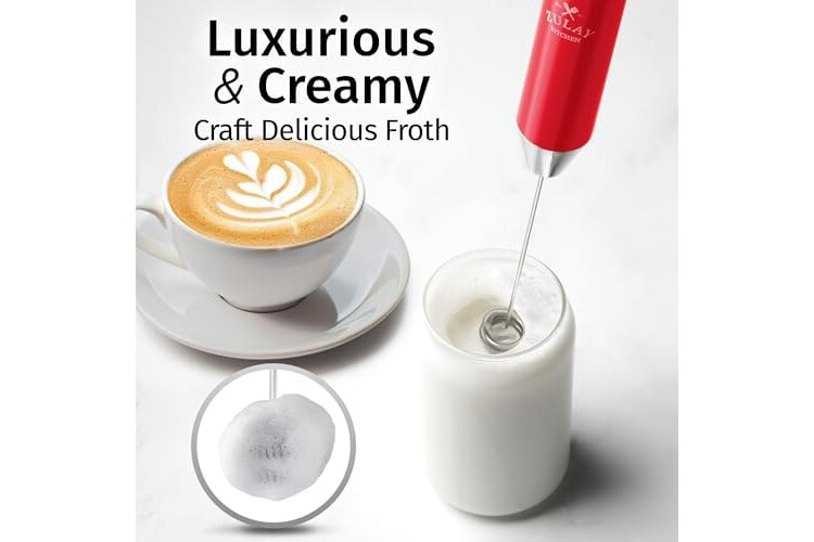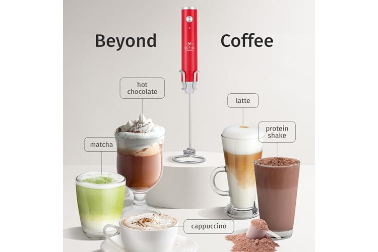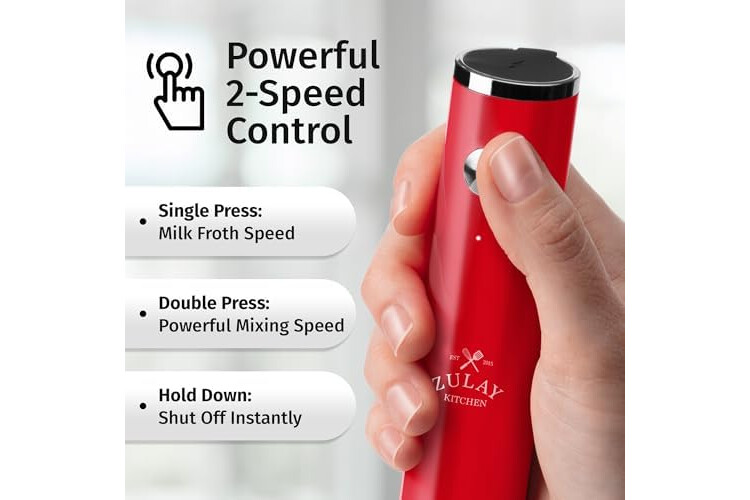 Zulay Kitchen Lux Electric Milk Frother Rechargeable Handheld - Powerful 2-Speed Motor, Waterproof, 2000mAh Battery - Drink Mixer for Latte, Cappuccino, Matcha & Protein Powder - Scarlet