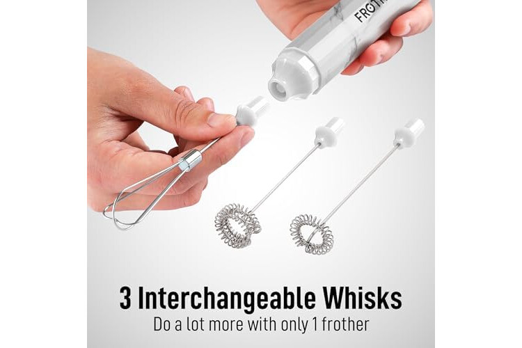 3-in-1 Whisk Set + Travel Case: Includes single whisk, double whisk, and egg beater attachments for frothing, whipping, and mixing. Comes with a durable travel case to store all parts organized on the go.