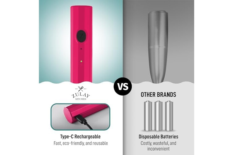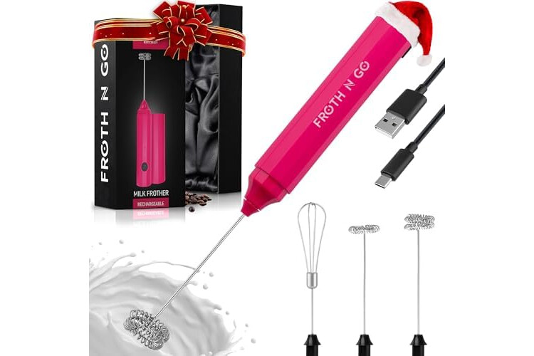 Zulay Froth N Go Milk Frother – Rechargeable 3-in-1 Handheld Frother Wand with Travel Case & USB-C Charger – Single, Double & Egg Whisk for Latte, Cappuccino, Matcha, Protein Shakes – Dragonfruit