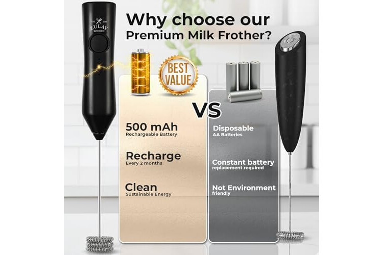 COMPACT, PORTABLE & BUILT TO LAST: Slim, lightweight design fits neatly into drawers, travel bags, or kitchen setups. Durable construction backed by the Zulay Kitchen Lifetime Warranty, ensuring this frother is your go-to tool for years.