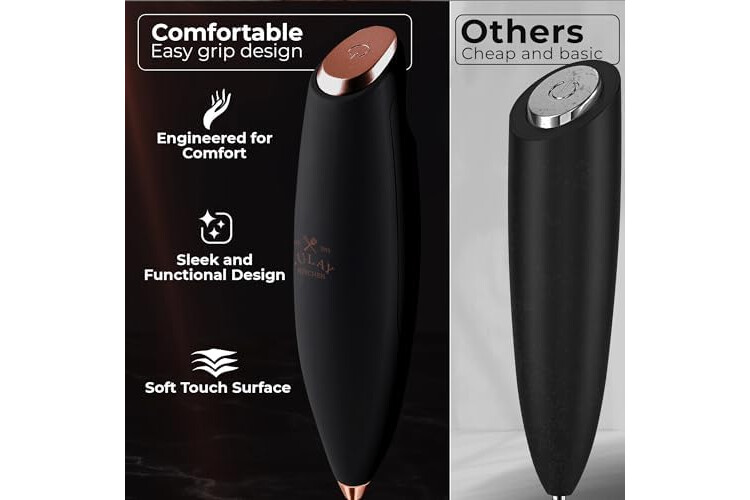 MAKE RICH, CREAMY FROTH IN SECONDS: Create café-quality foam for coffee, lattes, cappuccinos, hot chocolate, and matcha with this handheld frother wand. Perfect for milk, cream, or non-dairy alternatives.