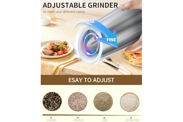 【Adjustable Coarseness】This electric pepper grinder set can meet your grinding needs. Easily adjust the core to achieve the perfect coarseness for grinding salt, pepper, or any other seasoning of your choice. The electric salt grinder refillable is made of a high-quality ceramic grinding core to help you retain the original flavor of the spices