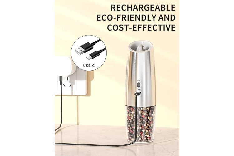【USB Rechargeale】The Type-C cable makes charging more convenient. Effortlessly recharge the automatic salt and pepper grinder set anytime, anywhere with the included USB-C cable. A full charge takes about 2 hours, eliminating the need for frequent battery replacements, saving your time and money