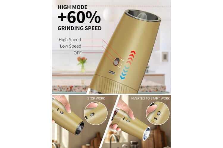 【Upgraded 2-Speed Grinding】The CIRCLE JOY Gravity Electric Salt and Pepper Grinder Set features a sleek, rechargeable design with dual-speed grinding to suit both everyday use and large family gatherings. The high-speed mode delivers rapid grinding, minimizing wait time for a more convenient cooking experience