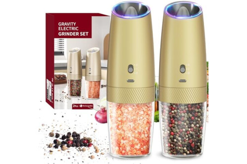 CIRCLE JOY Gravity Electric Salt and Pepper Grinder Set with 2-Speed, Rechargeable Salt and Pepper Grinder Set, Adjustable Coarseness, Whiet LED Light