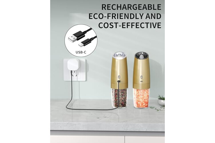 【Type-C Fast Charging】The Type-C cable makes charging more convenient. Effortlessly recharge the automatic salt and pepper grinder set anytime, anywhere with the included USB-C cable. A full charge takes about 2 hours, eliminating the need for frequent battery replacements, saving your time and money