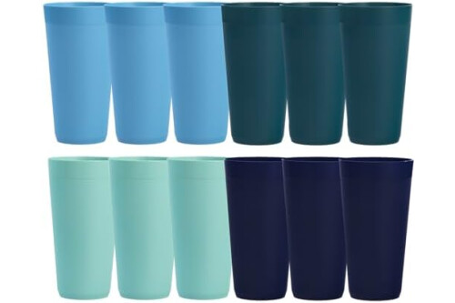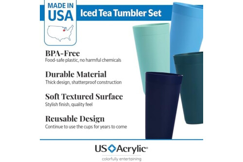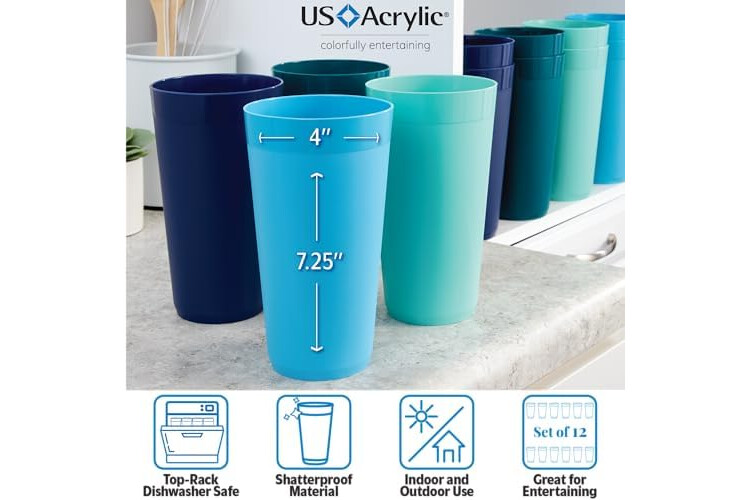 US Acrylic Newport 32 ounce Unbreakable Plastic Stackable Iced-Tea Tumblers in 4 Coastal Colors | Set of 12 Drinking Cups | Reusable, BPA-free, Made in the USA, Top-rack Dishwasher and Microwave Safe