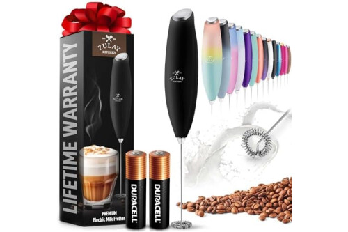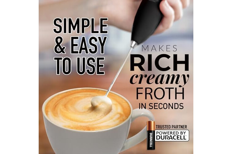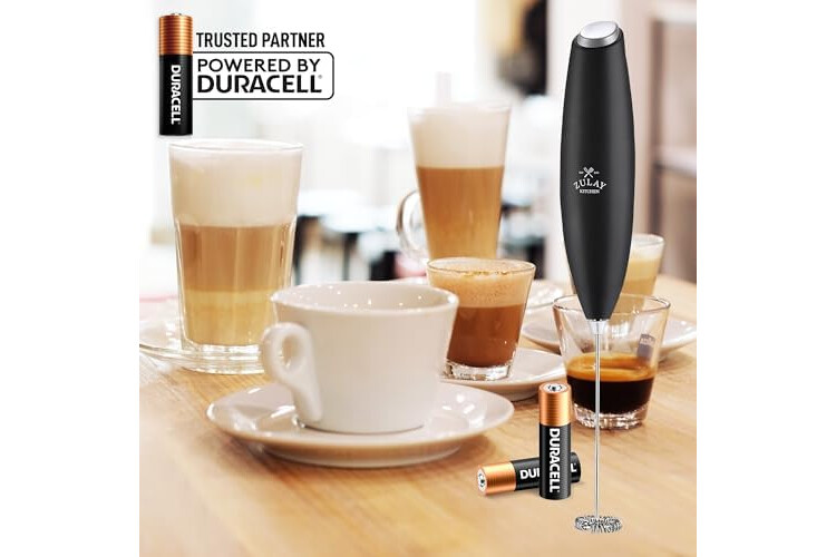 Zulay Kitchen Duracell Powered Milk Frother Wand Drink Mixer - Durable, Proprietary Z Motor Max - Handheld Frother Electric Whisk, Milk Foamer, Mini Blender and Electric Mixer Coffee Frother - Black