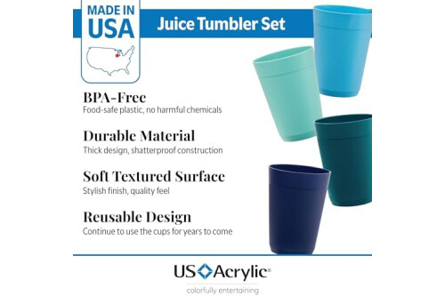 Enjoy everyday drinks with confidence using our American-made stackable tumblers, a set of 12 10-ounce glasses designed for your convenience. Crafted from BPA-free durable plastic, these cups ensure safety without compromising quality, making them ideal for both indoor and outdoor use.