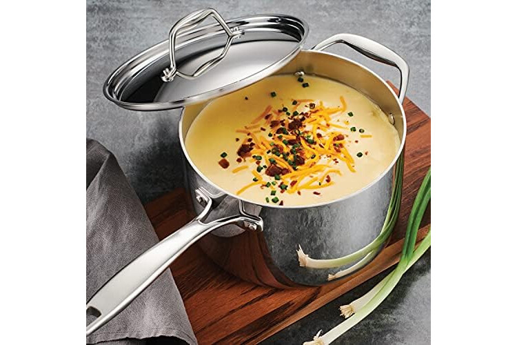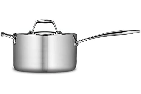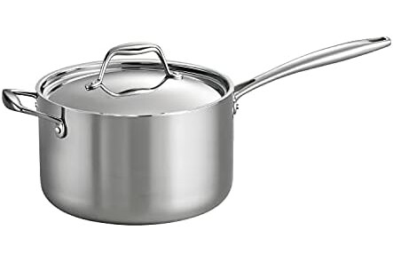 Experience the superior cooking performance of the Tramontina 4-Quart Tri-Ply Clad Stainless Steel Covered Sauce Pan. Its innovative tri-ply construction features an aluminum core encased in durable 18/10 stainless steel, providing exceptional heat distribution and eliminating hot spots for precise cooking. This all-clad saucepan is perfect for creating generous portions of sauces, soups, and side dishes for up to four people. With tall sides that retain heat efficiently, it excels at simmering rich stews and crafting flavorful rice dishes. Made without PTFE/PFAS, it also promotes clean cooking. Designed for safety and quality, this NSF-certified, cladded pan is compatible with all cooktops, including induction, and is oven-safe up to 500°F. The sleek, mirror-polished exterior not only looks professional but also features an easy-release surface for effortless cooking. While it's dishwasher-safe, handwashing is recommended for best results.