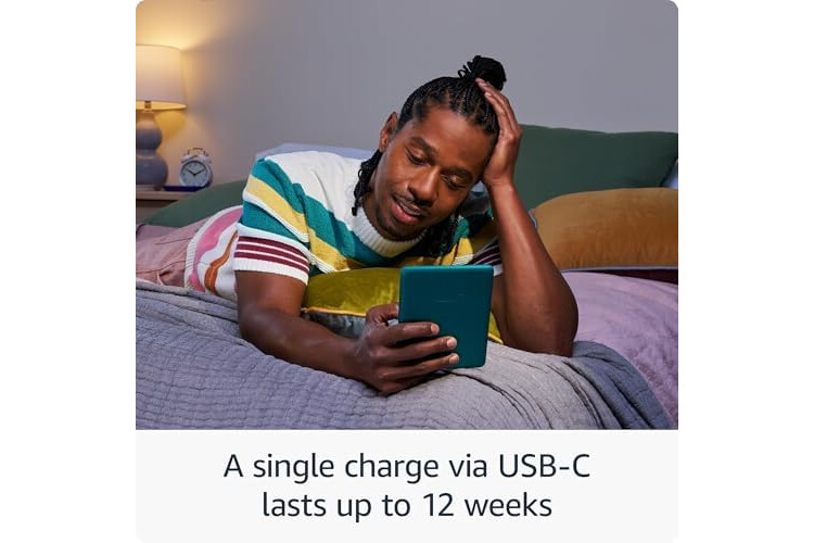 • Battery life for your longest novel – A single charge via USB-C lasts up to 12 weeks.