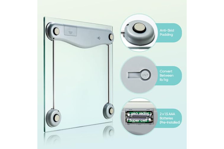 π¨ π«ππππππ πͺπππππ: The scaleβs 6-mm tempered glass platform provides exceptional durability and comfort. Equipped with a supportive frame and anti-skid paddings to prevent slipping, you can rely on the sturdiness of our scale