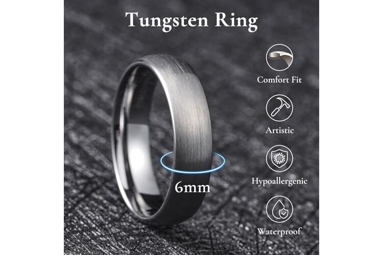King Will Wedding Band for Men Women, 2/4/6/7/8mm Domed Matte Brushed Tungsten Carbide Rings, Solid/Dual Color Engagement Rings, Comfort Fit