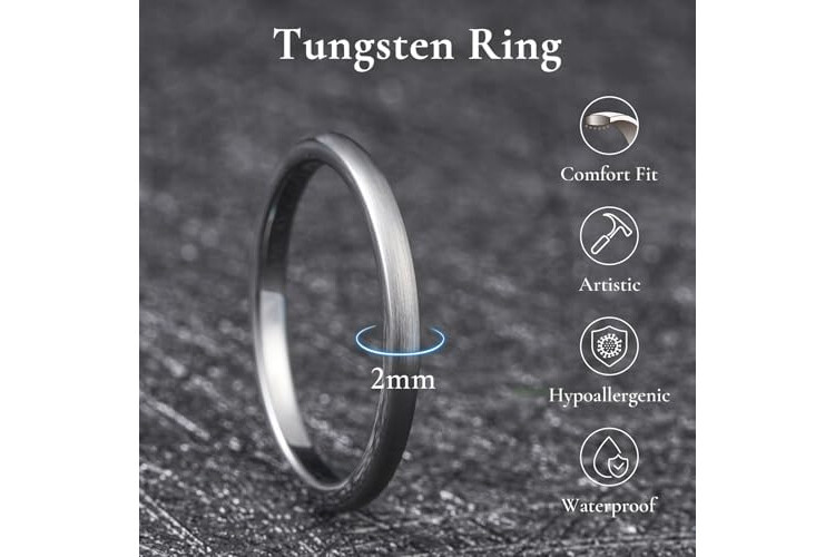 King Will Wedding Band for Men Women, 2/4/6/7/8mm Domed Matte Brushed Tungsten Carbide Rings, Solid/Dual Color Engagement Rings, Comfort Fit