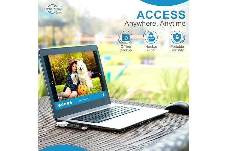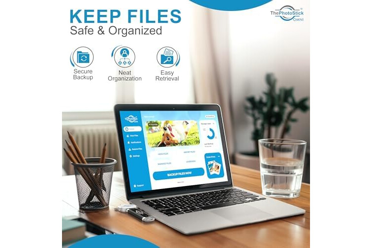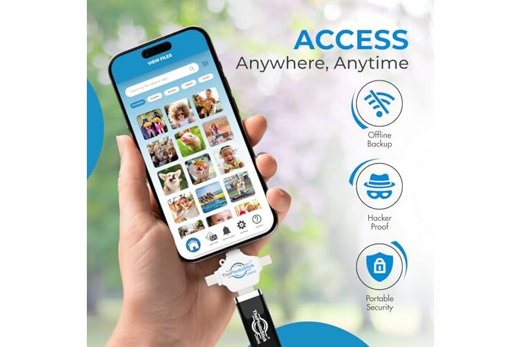 Simple, secure content backup – ThePhotoStick Omni automatically finds and saves photos, videos, and other files, helping to keep your digital life organized and protected across devices.