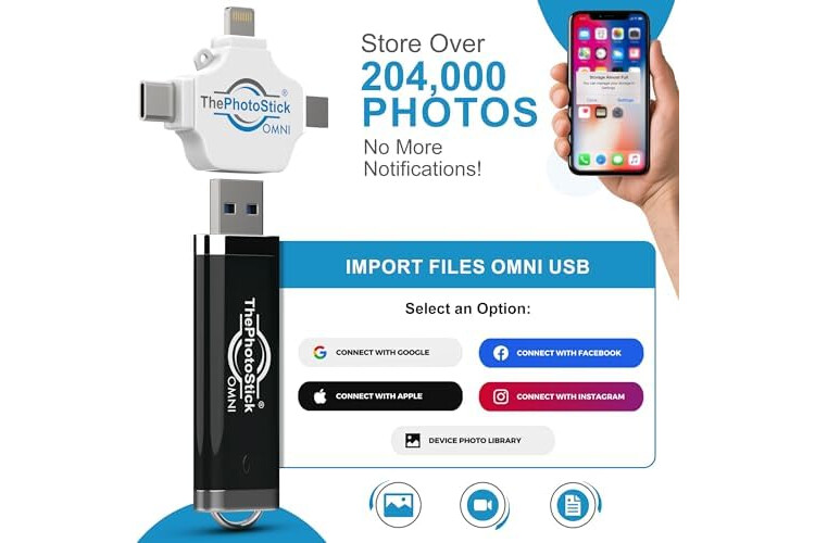 ThePhotoStick® Omni 128GB USB Flash Drive & Memory Stick – Photo & Video Backup for iPhone, Android, Mac & PC – Multiport Connection to Easily Store & Transfer Files