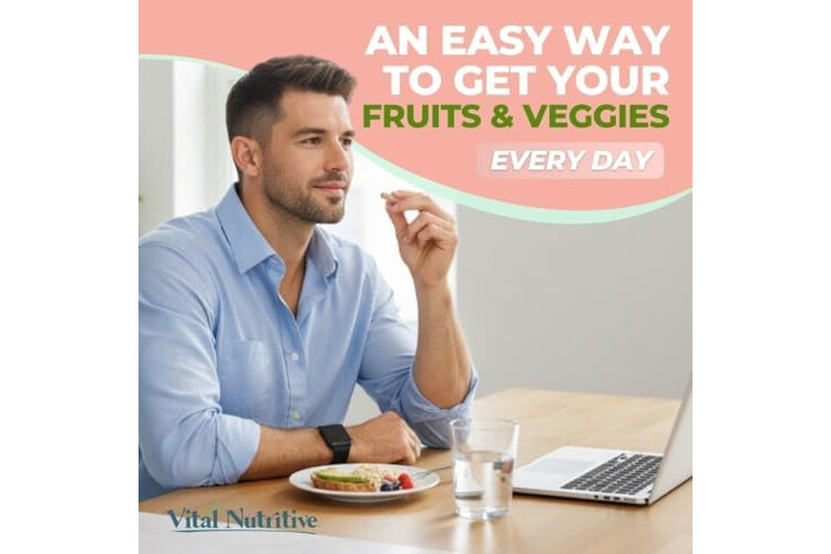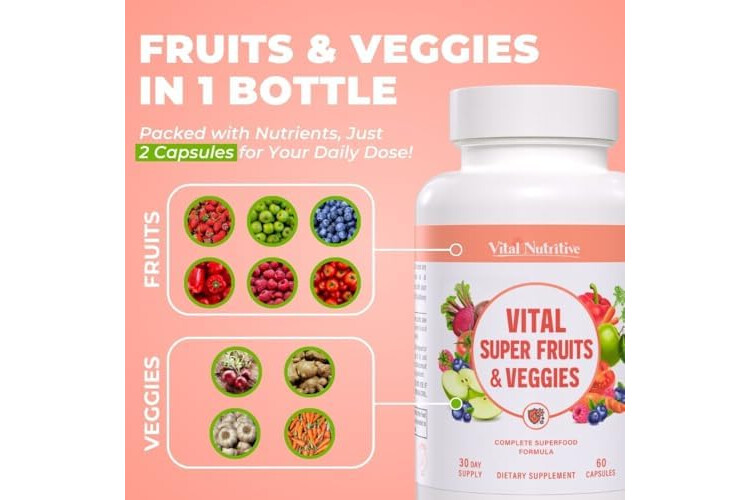 Vital Super Fruits & Veggies - Daily Superfood Capsules for Adults - Fruit & Vegetable Supplements to Boost Immunity & Energy - 2-in-1 Formula for Overall Wellness