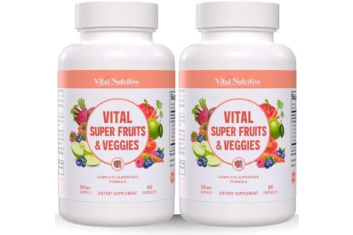 Vital Super Fruits & Veggies combines the benefits of fruits and vegetables in a convenient 2-in-1 capsule, delivering essential vitamins, minerals, and antioxidants to help support daily well-being.