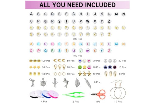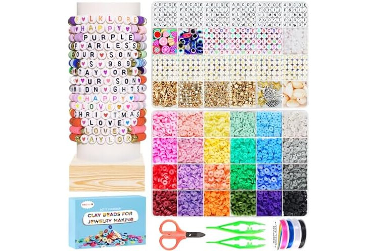 ALL YOU NEED INCLUDED - The colors are bright and beautiful. This bead bracelet set contains 6240 6mm clay beads in 24 colors, 750 letter beads and some other beads including heart beads, star beads, pearls and flower beads, also a pair of plastic tweezers, a pair of scissors, and four rolls of elastic bracelet string cord