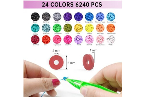 SAFE MATERIAL - Our clay beads are made of high quality polymer clay, the bead is 6mm in diameter, 2mm in hole diameter and 1mm in thickness.The kit comes with clear instructions that are easy to follow, ensuring that even beginners can quickly get the hang of bracelet making