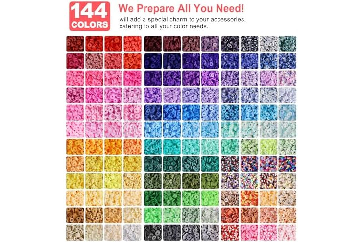 Redtwo 23500pcs Clay Beads Bracelet Making Kit, 144 Colors 7 Boxes Flat Polymer Heishi Beads Set for Friendship Jewelry Making with Pendant Charms, Crafts Gifts for Girls Ages 6-12 Kids Adults