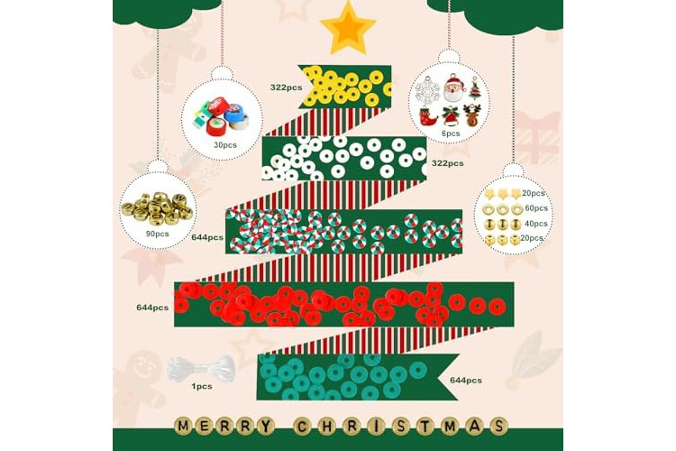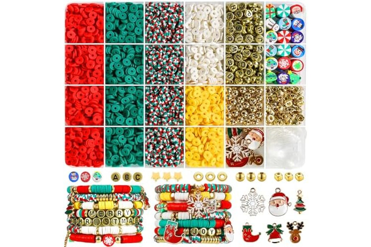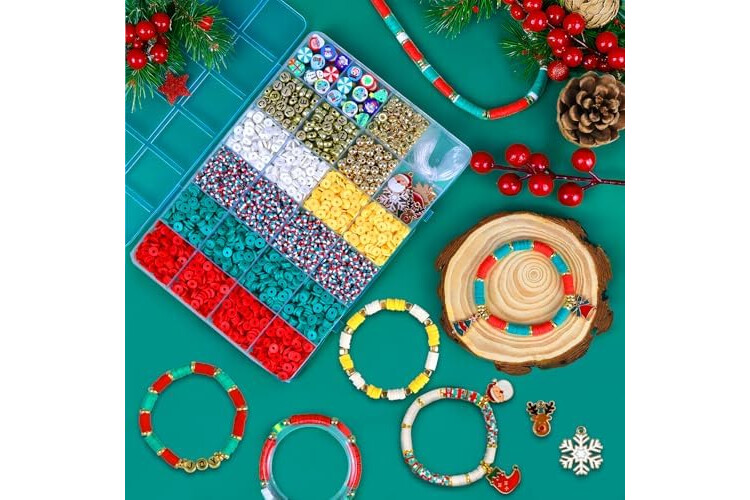 Vibrant Beads in Cheerful Holiday Colors - Includes over 3000 clay beads(6mm) in red, green, white, and gold, plus fun candy-cane-striped designs, letting kids mix and match for unique holiday creations