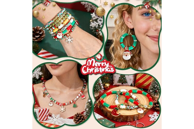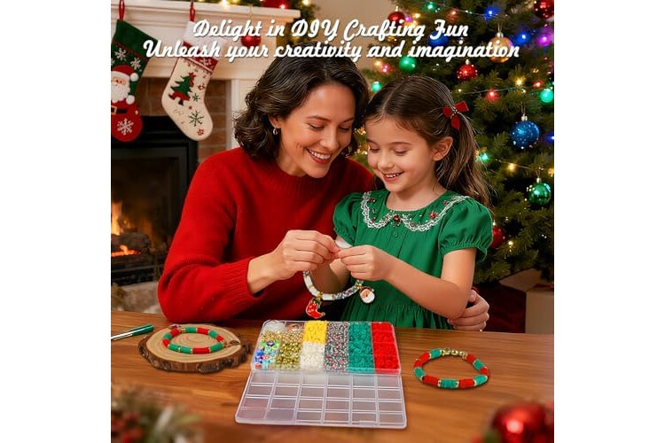 Christmas-Themed DIY Jewelry Kit - Create festive bracelets and accessories with holiday charms featuring Santa, reindeer, snowflakes, and more! Perfect for adding a personal touch to the Christmas season