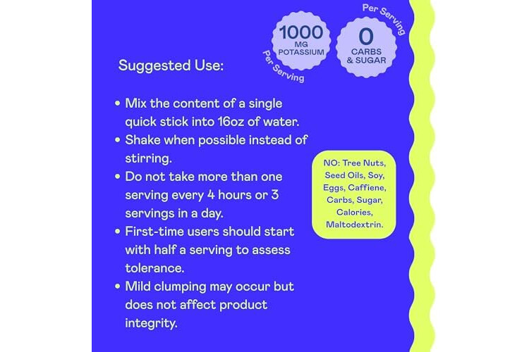 • 1000 MG POTASSIUM + ESSENTIAL ELECTROLYTES IN A STICK - Each Quick Stick includes a full dose of potassium along with magnesium, calcium, and trace minerals for powerful hydration support on the go. Support electrolyte balance and daily performance with these convenient sized quick sticks.