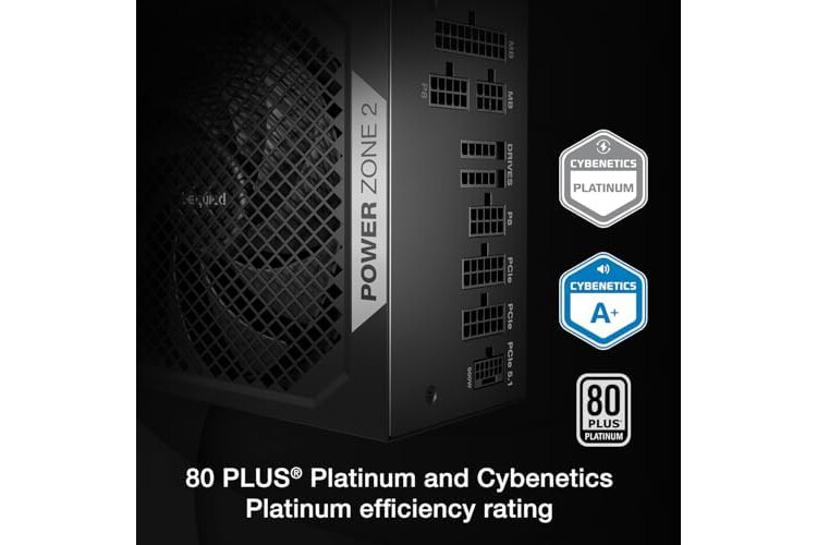 be quiet! Power Zone 2 1000W ATX 3.1 PSU | 80 Plus and Cybenetics Platinum Efficiency | Zero RPM Low-Noise Power Supply | PCIe 5.1 Ready | Black | BP008US