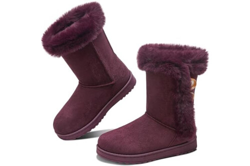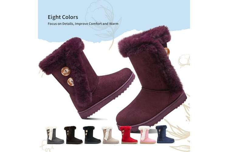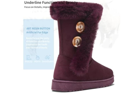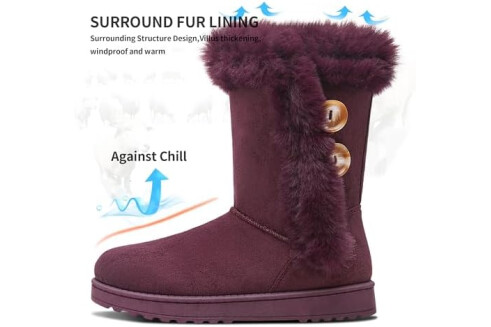 Obtaom Women’s winter snow boots Short Mid Calf fashion boot Art Resin button Faux Suede boots for women
