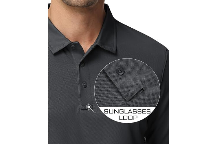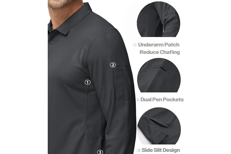 MAGCOMSEN Men's Polo Shirts 3 Button Quick Dry Performance Long Sleeve Tactical Shirts Pique Jersey Golf Shirt