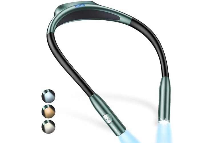 Gritin LED Neck Reading Light,Book Light for Reading in Bed-Eye Caring 3 Colors, Dimmable Brightness, Bendable Arms, 80+Hrs Runtime, Neck Round Design, Lightweight for Crafting, Knitting-Dark Green