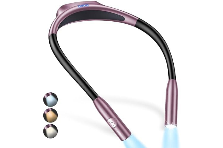 Gritin LED Neck Reading Light,Book Light for Reading in Bed-Eye Caring 3 Colors, Dimmable Brightness, Bendable Arms, 80+Hrs Runtime, Neck Round Design, Lightweight for Crafting, Knitting-Night Violet