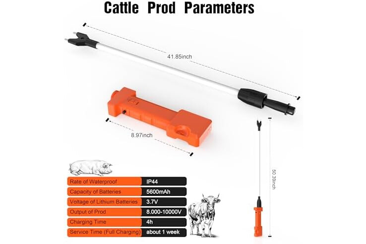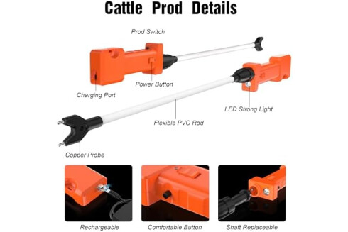 Ideal for Livestock Management - This premium rechargeable cattle prod effectively herds cattle, pigs, sheepdogs and other animals with its high-voltage, low-current output - powerful enough to control aggressive animals while remaining safe for regular farm use.