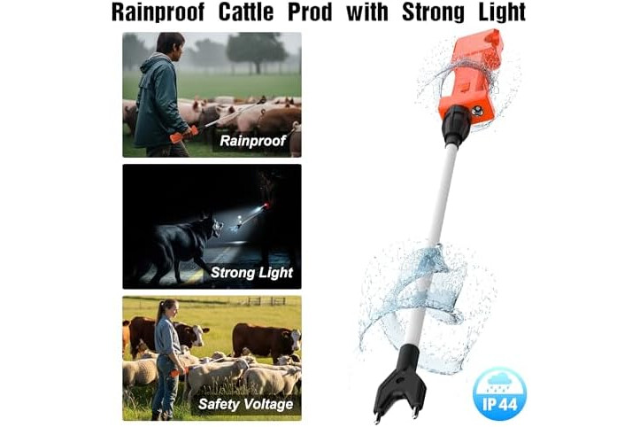 Cattle Prod Rechargeable with Led Light, Waterproof Lightweight Cattle Prod for Dogs, Cow, Livestock