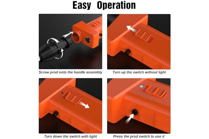 Enhanced Safety Features - Equipped with a safety switch to prevent accidental activation, a clear strong light, and waterproof construction for reliable operation in all weather conditions.