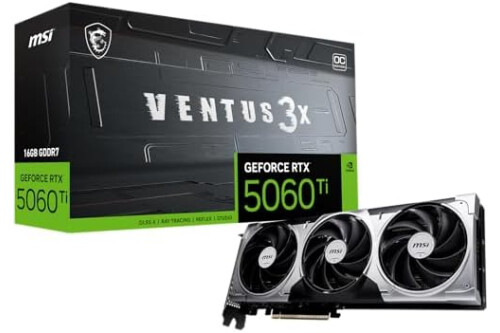 MSI Gaming RTX 5060 Ti 16G Ventus 3X OC Graphics Card (16GB GDDR7, 128-bit, Extreme Performance: 2617 MHz, DisplayPort x 3 2.1a, HDMI 2.1b, NVIDIA Blackwell Architecture)