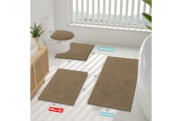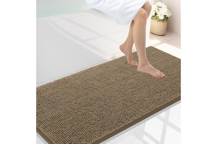 Smiry Luxury Chenille Bathroom Rugs 40x24, Extra Soft and Absorbent Shaggy Bath Mat, Machine Washable, Non-Slip Plush Carpet Runner for Tub, Shower, and Floor, Home Decor Accessories, Camel