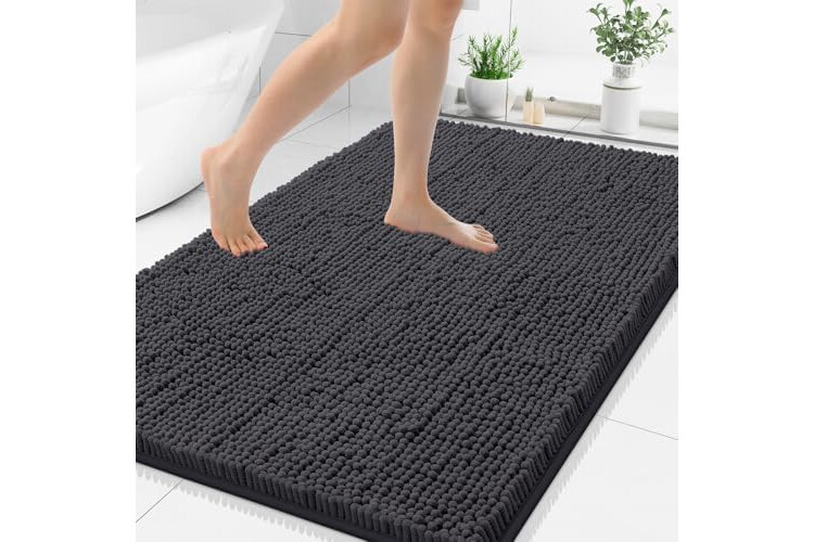 Smiry Luxury Chenille Bathroom Rugs 50x30, Extra Soft and Absorbent Shaggy Bath Mat, Machine Washable, Non-Slip Plush Carpet Runner for Tub, Shower, and Floor, Home Decor Accessories, Charcoal Grey