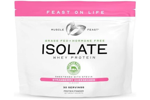 Muscle Feast Grass-Fed Whey Protein Isolate, All Natural Hormone Free Pasture Raised, Whey Isolate Protein Powder for Men and Women, Gluten-Free, Delicious Isolate Protein - Strawberry Cheesecake, 2lb
