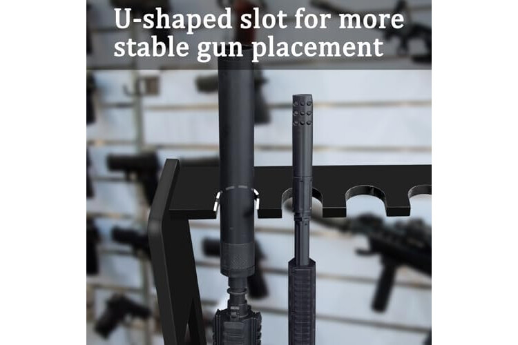 • Diverse Use: Perfect for indoor use, this gun storage rack keeps your rifles, shotguns, and pistols securely in gun store, shooting gallery, sleeping room and home study