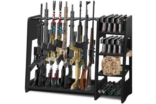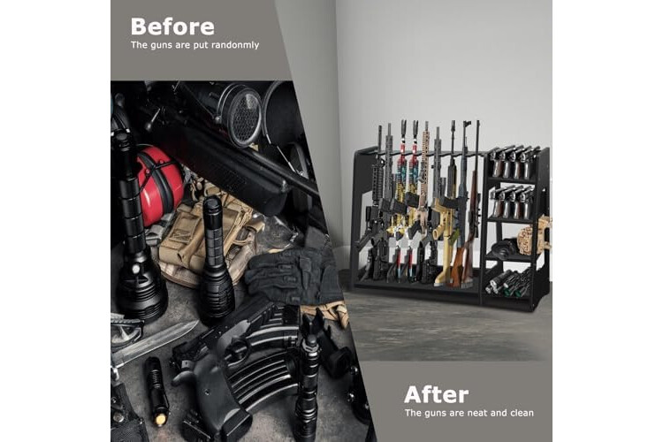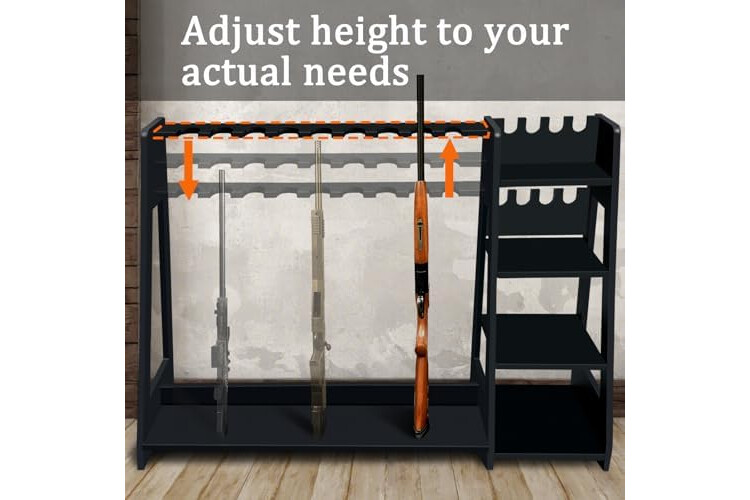 • Adjustable And Large Space: With adjustable height and large storage space, this gun rack can hold up to nine long guns and eight handguns