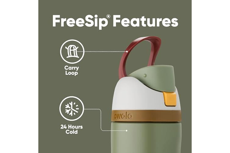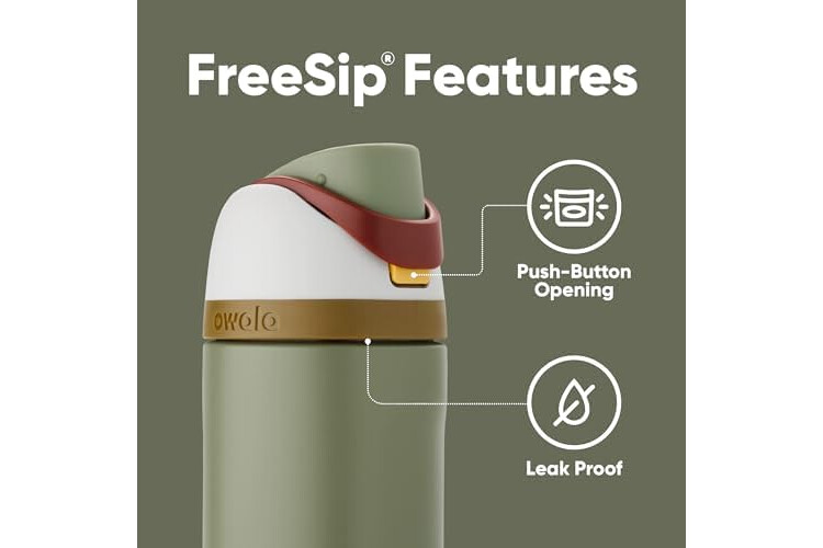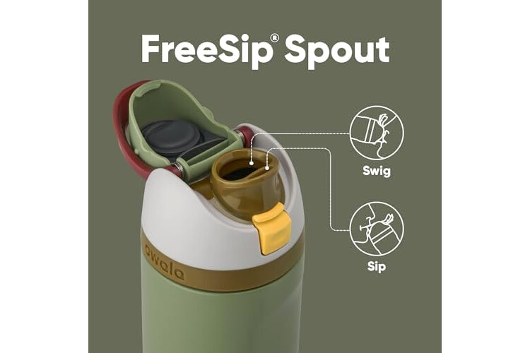 • Patented FreeSip spout designed for either sipping upright through the built-in straw or tilting back to swig from the spout opening