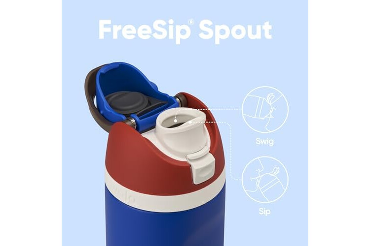 • Patented FreeSip spout designed for either sipping upright through the built-in straw or tilting back to swig from the spout opening