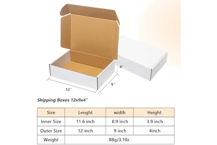STURDY MATERIAL: ZxeluPapr 12x9x4 shipping box is made of corrugated cardboard, the reinforced construction ensure your items are well-protected during transportation.
