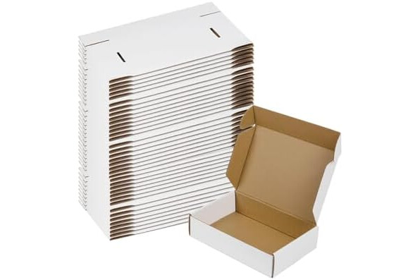 50 Pack 7x5x2 Small Shipping Boxes, White Corrugated Cardboard Packaging Box for Small Business