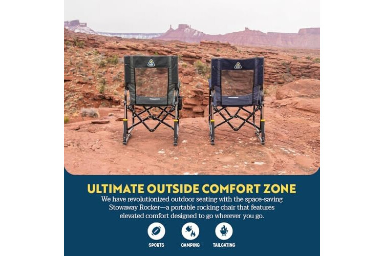 • OUTDOOR LIVING. Great for relaxing by the campfire or sideline, the Stowaway Rocker from GCI Outdoor is an adult rocking chair that's easy to carry and set up. Relax in comfort on your adventure with smooth rocking on any surface, anywhere.