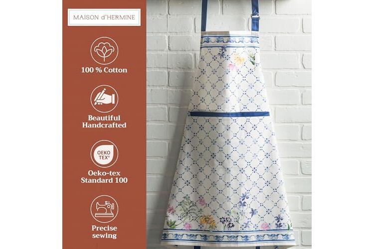 Maison d' Hermine 100% Cotton Apron for women with Pocket Kitchen Chef Apron for Men Cooking Gardening Server Waitress