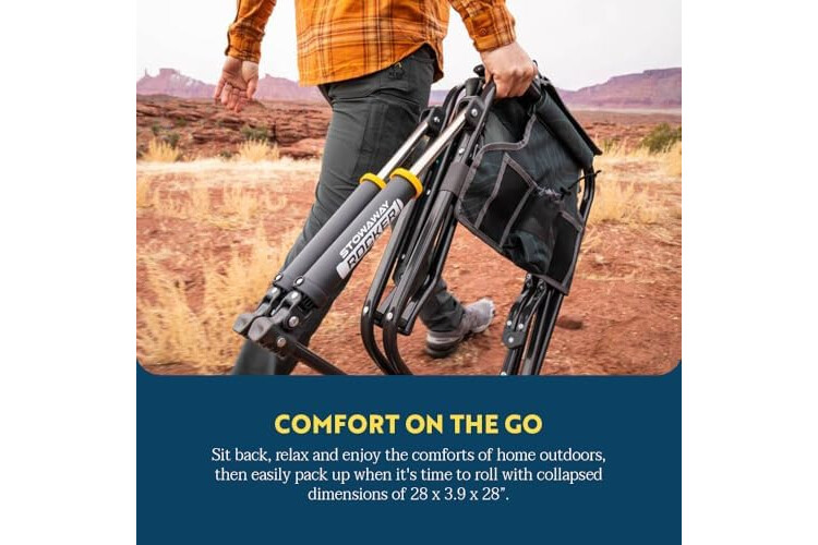 • OUTDOOR LIVING. Great for relaxing by the campfire or sideline, the Stowaway Rocker from GCI Outdoor is an adult rocking chair that's easy to carry and set up. Relax in comfort on your adventure with smooth rocking on any surface, anywhere.