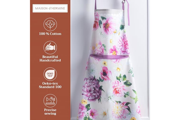 Maison d' Hermine 100% Cotton Apron for women with Pocket Kitchen Chef Apron for Men Cooking Gardening Server Waitress